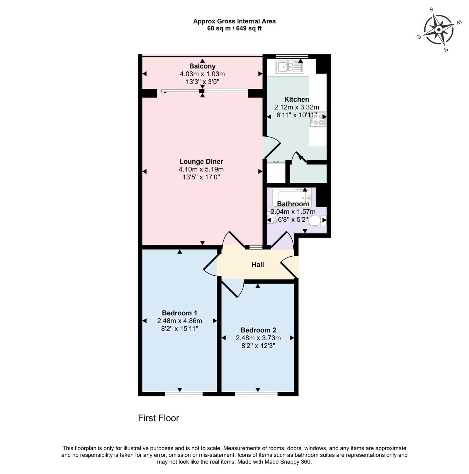 First floor entrance hall from communal halls, three piece bathroom, two double bedrooms, large sitting dining room with balcony access and a fitted kitchen.