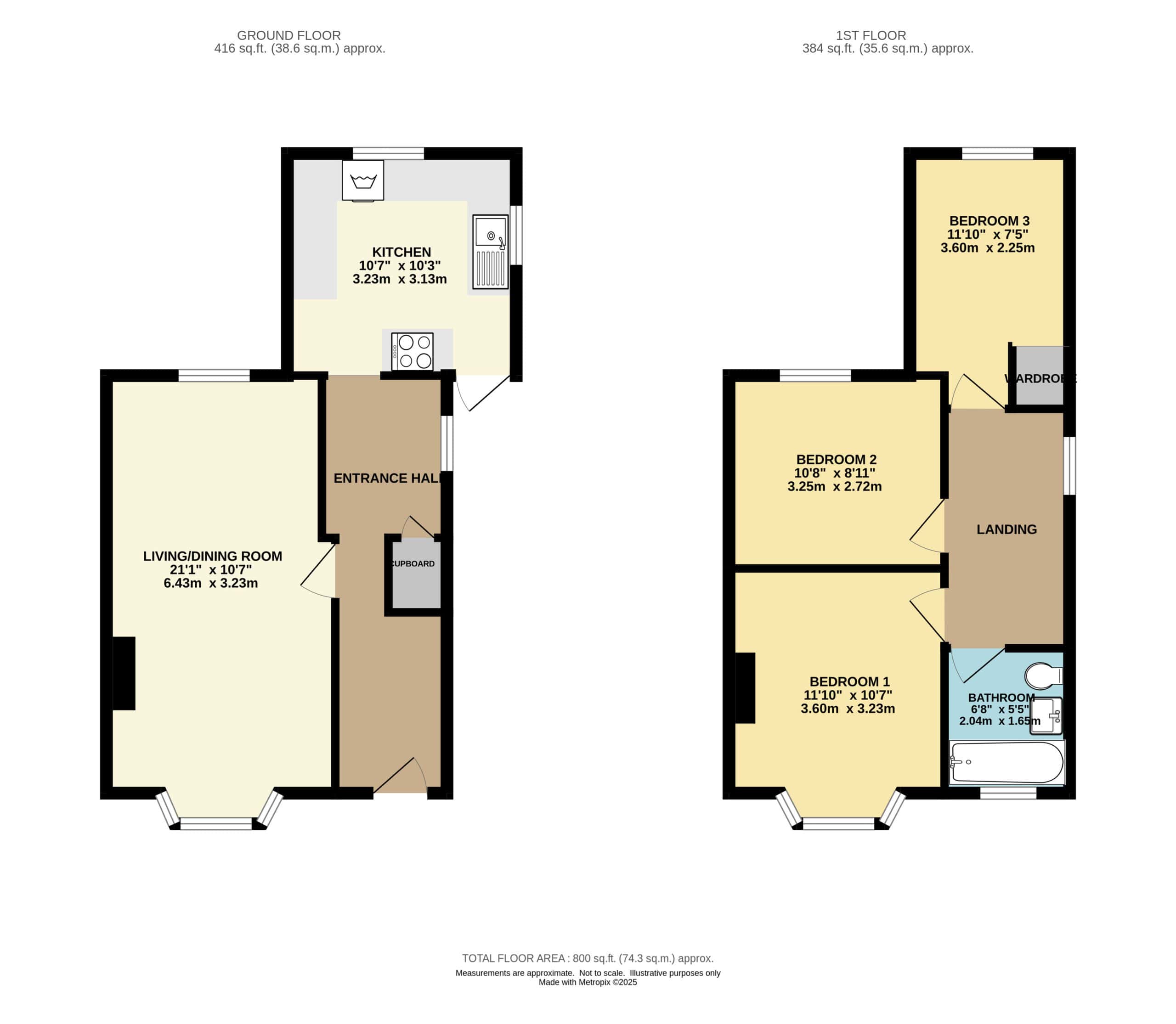 Ground floor comprises hallway, Living/dining room and modern kitchen. First floor, three bedrooms and family bathroom.